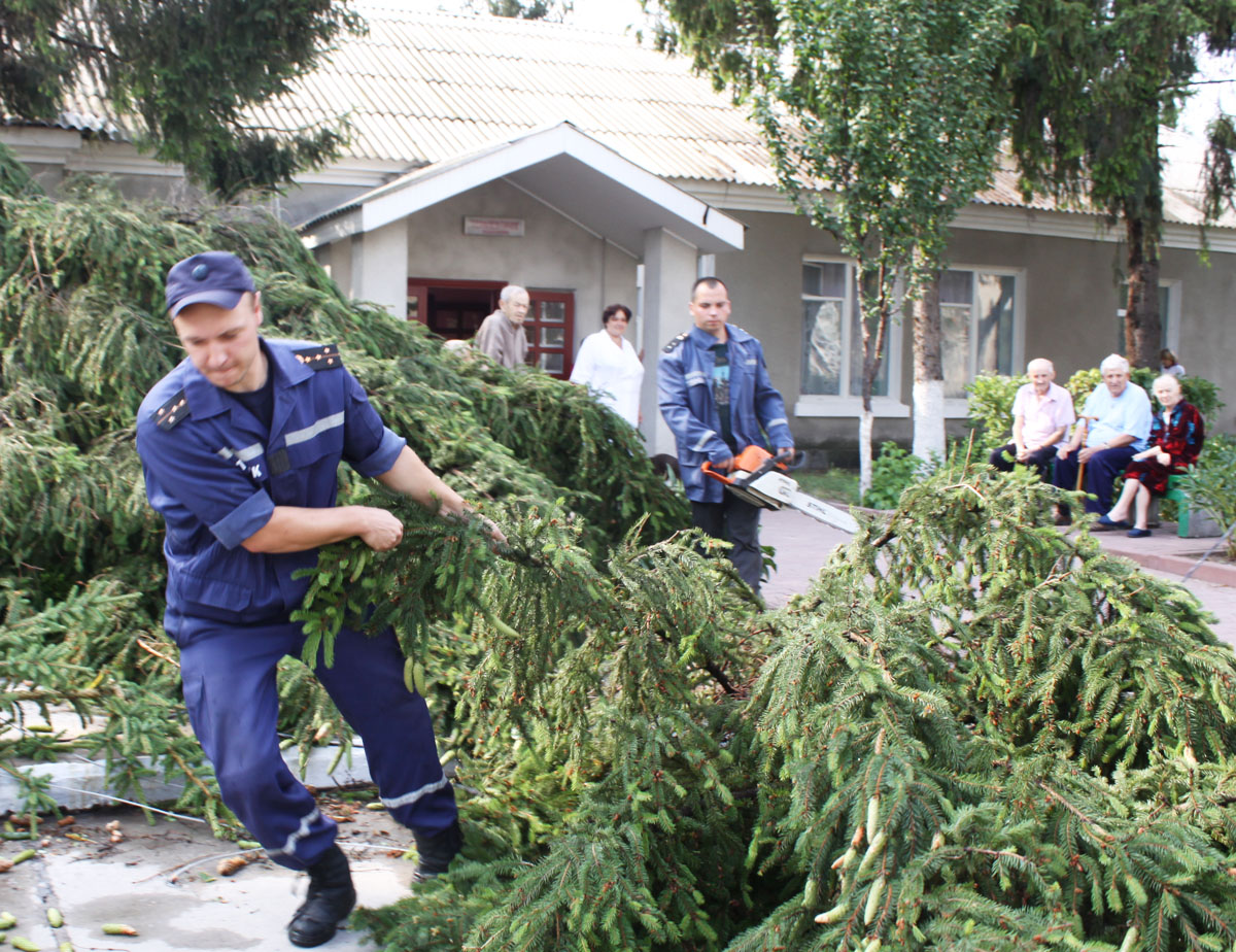 Під вікнами терапевтичного відділення Канівської ЦРЛ спала столітня ялина. Слава Богу, дерево «лягло» за кілька метрів від лікувального корпусу